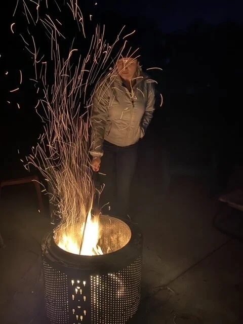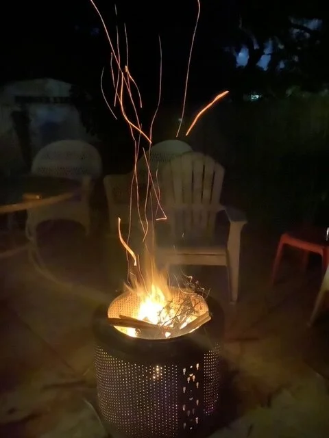 Tom and I had a little fire In our eclectic little fire pit in honor of Miles. It is an old washing machine drum. I highly recommend them as fire pits although they are not easy to free from the machine.